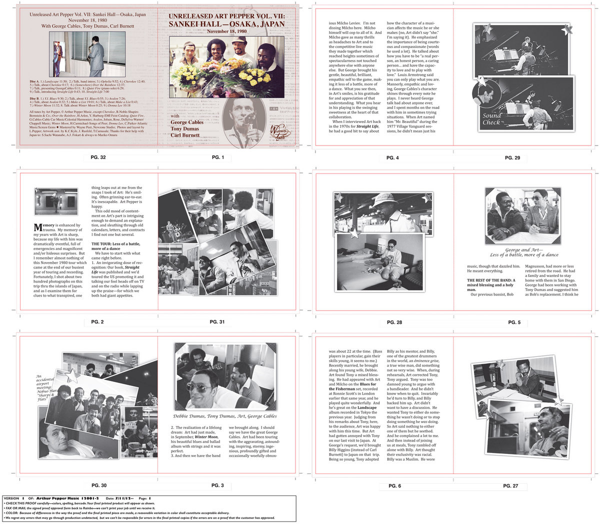 Laurie Pepper included a meaty booklet into the jewel case of this double disc set, full of candid snapshots she took of that tour and her equally candid personal thoughts and recollections from that time, a time she described as a happy one for her husband. But you probably don’t need to see the dozens of pictures of him grinning to know he was happy; the music performed the night of November 18, 1980 in Osaka, Japan affirm his contented state of mind.