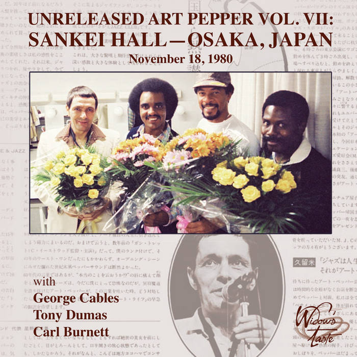 It’s under these happy circumstances that we find Pepper for a recording of a show he performed in Osaka, Japan. Unreleased Art Pepper Vol. VII: Sankei Hall-Osaka Japan, November 18, 1980 is the latest in a series of bootleg recordings cleaned up and made fit for official release by Laurie Pepper. These Unreleased Art Pepper series chronicle the music in the final period in Pepper’s life, a man reinvigorated after many difficult years and reassuming his place as one of the finest bop alto-saxophonists to follow in the wake of Charlie Parker.